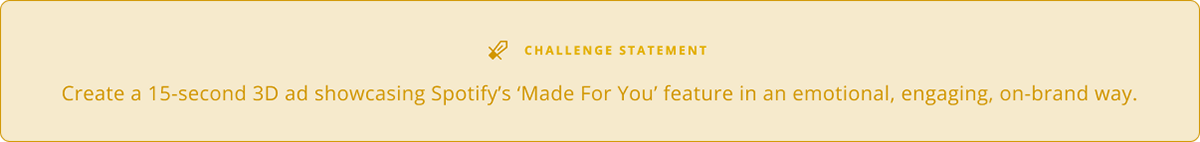 An promotional Ad highlighting Spotify’s algorithm-driven ‘Made For You’ experience. This motion piece brings Spotify’s tailored experience to life through bold, engaging 3D storytelling.