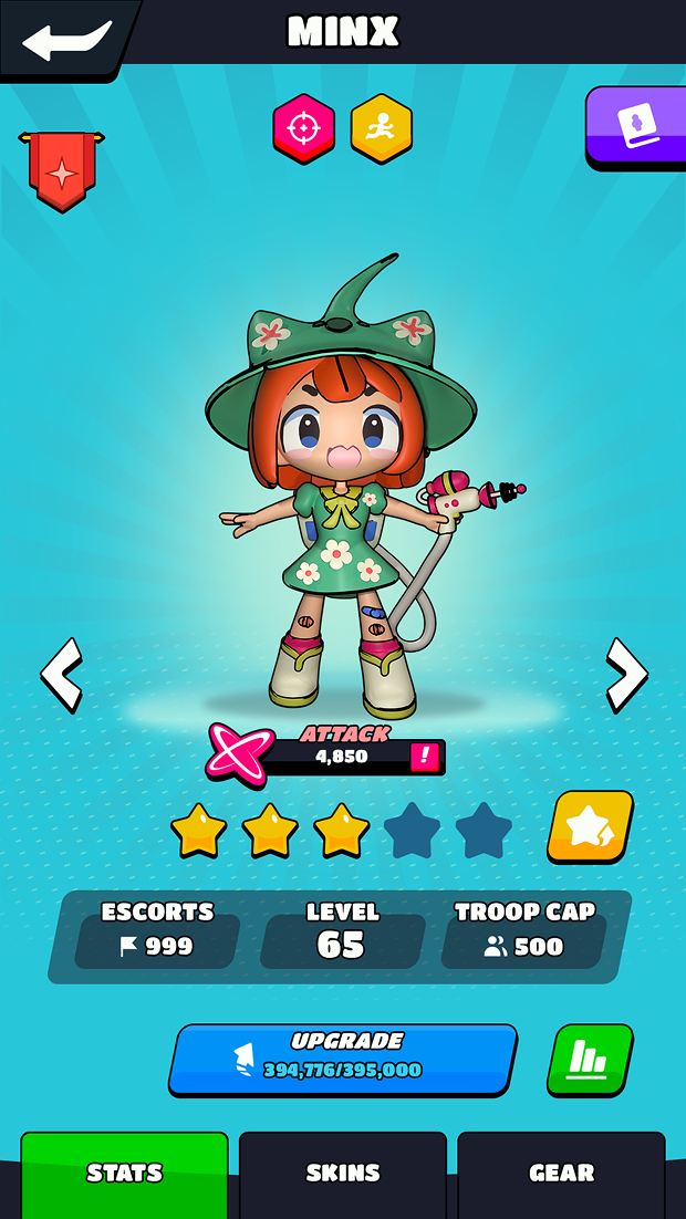 A concept mobile game UI design exploring character progression and upgrade systems, crafted to balance playful visuals with clear, intuitive navigation.