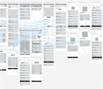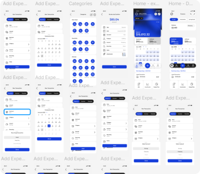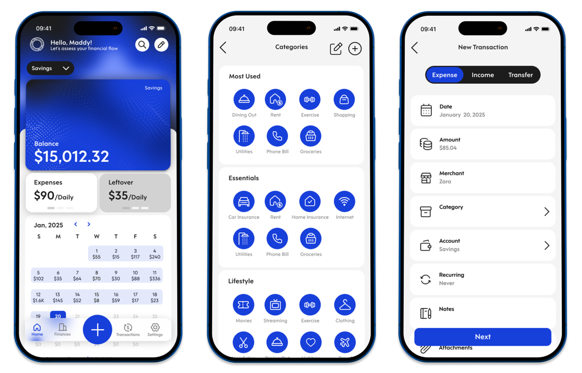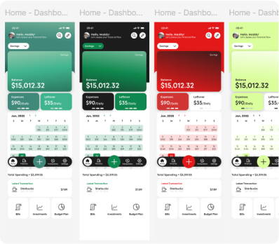 Blue evokes stability and calm, symbolizing trust and responsibility. The gradient reflects the natural ebb and flow of finances, while the neutral tones (black, grays, and white) provide balance and support.